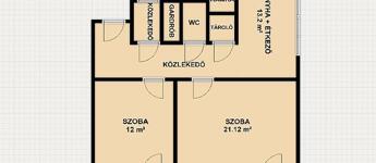 2 szoba, étkezős konyha, kamra, gardrób, zuhanyzós fürdőszoba, külön mellékhelyiség, közlekedő, előszoba, erkély.