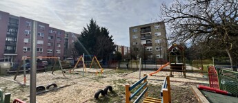 játszótér, közösségi sütögető, készülő kültéri edzőpark