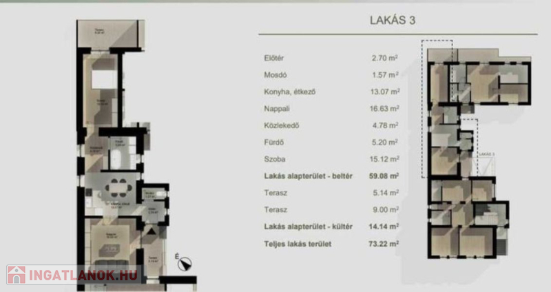 Eladásra kínálok Cegléd egyik legfrekventáltabb utcájában, az Öreghegyi utcában, egy hatlakásos lakóházban teljesen felújított lakást. Hasznos alapterülete 59 m2 , két terasszal az egyik 5 m2, a másik 9 m2. A szoba, a nappali laminált parkettás, konyha étkező hidegburkolatos a fürdőszoba zuhanykabinos és kádas is.