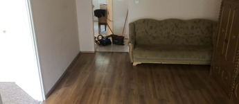A lakás elrendezése praktikus, 2 szoba + nappali, konyha étkezővel, kamra. A fürdőszoba és WC külön került kialakításra.