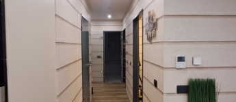 A konyhába egyedi tervezésű gépesített konyhabútor (főzőlap, sütő, mikró, mosogatógép, hűtő, elszívó) került beépítésre. Az egyik szobában egy hatalmas méretű, praktikus belső elrendezéssel bíró gardróbot alakítottak ki. A fürdőszobába nívós burkolatok és szaniterek kerültek. A prémium kivitelezés, a beépített bútorok és szekrények, valamint a LED hangulatvilágítás mind hozzájárulnak ahhoz, hogy otthona stílusos és kényelmes legyen.