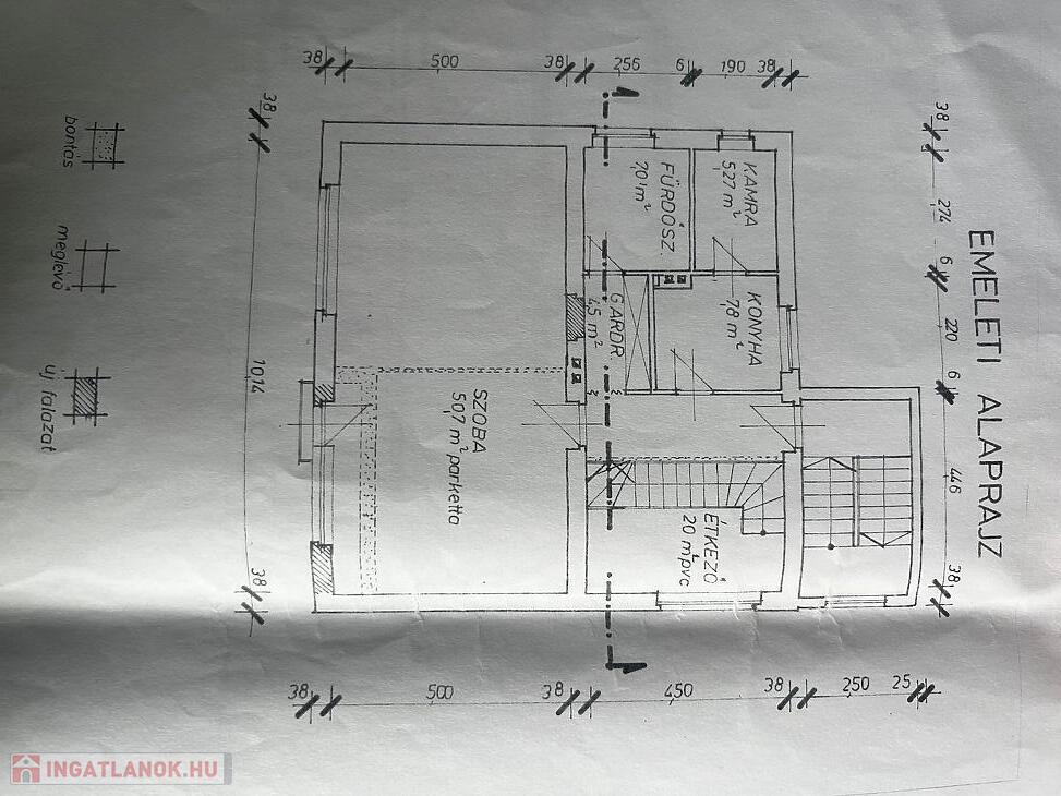Emelet: 2 szoba, étkező, konyha, kamra, kádas fürdőszoba + mellékhelyiség, erkély.