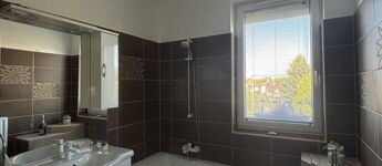 Győr kedvelt, természetközeli, kertvárosias részén, Révfalu és Kisbácsa találkozásánál eladó egy teljes körűen felújított, 74 m²-es, nappali + 2 hálószobás, gépkocsi-beállóval rendelkező 1. emeleti tégla lakás egy csendes, négy lakásos társasházban, egy zárt és egy utcai gépkocsibeállóval.