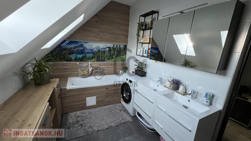 - nagyméretű fürdő dupla mosdóval szintén WELLIS-es