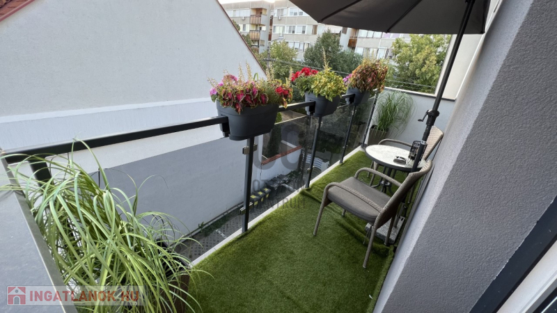 - az egyik erkély jelenleg napozó ágyas, a másik pedig prémium műfüves napernyővel, kis kiülő szettel
