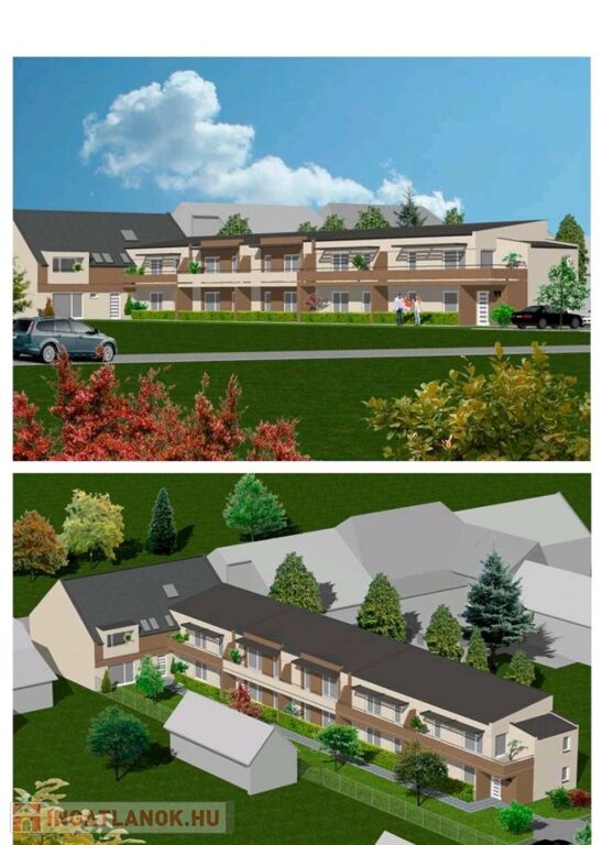Jánossomorja központi részén épülő társasházban 1 emeleti, 40m2 nettó lakóterületű, nappali plusz 1 hálószobás, 11,8m2-es terasszal rendelkező téglalakás eladó.