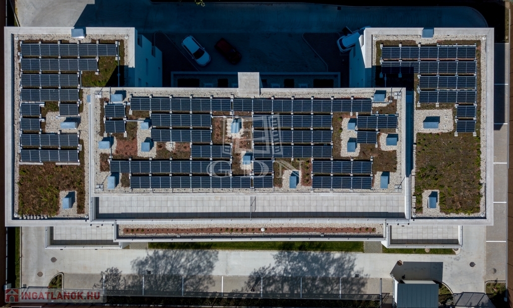 A tetőn található nagy teljesítményű napelemrendszernek köszönhetően a lakások fenntartási- rezsi költsége kifejezetten alacsonyan tartható lesz majd.