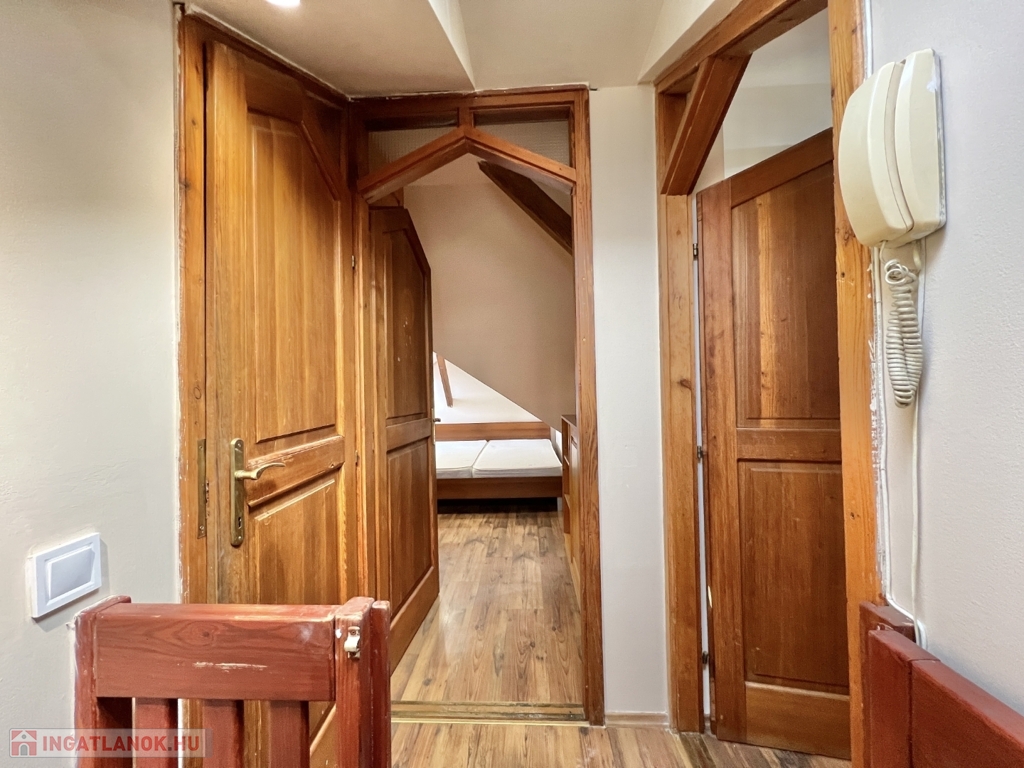 Kaposváron a belvárosban – a Fő utcában – liftes társasház, 3. emeletén lévő 60 m2-es, azonnal költözhető lakás - a képeken látható műszaki állapotban - eladó. A lakás alsó szintjén előszoba-nappali, étkező-konyha, fürdőszoba-wc helyiségek kerültek kialakításra. A tetőtérbe az előtérben lévő lépcsőfeljáró vezet fel, ahol további 2 félszoba, wc-kézmosó vannak. A lakás fűtése és melegvíz ellátása kombi gázkazánnal megoldott, valamint légkondicionáló is felszerelésre került. Az ingatlan a lokációja miatt akár befektetésnek is kitűnő lehetőség, számos közintézmény csupán néhány száz méteren belül található, például a Megyeháza, Törvényszék, Kormányhivatal, Polgármesteri Hivatal, de akár a Kossuth tér is csupán 1 perc sétával elérhető.