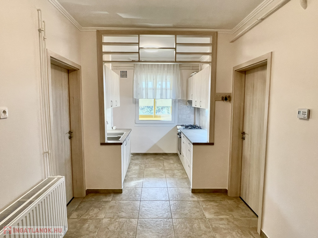 V jedné z nejoblíbenějších rezidenčních oblastí Keszthely, na ulici Schwarz Dávid, nabízíme k prodeji kompletně zrekonstruovaný, částečně zařízený byt o rozloze 75 m² ve druhém patře! Dům je zděný a zvenku zateplený. Byt má prostornou chodbu, moderní kuchyň s jídelním koutem, pohodlný obývací pokoj, tři samostatné ložnice, koupelnu a samostatnou toaletu. V obývacím pokoji a pokojích je kvalitní laminátová podlaha, zatímco v ostatních místnostech je kvalitní dlažba. Okna jsou moderní, plastová, tepelně izolovaná, vybavená okenicemi a moskytiérami. Vytápění a ohřev vody zajišťuje nový, energeticky úsporný kondenzační plynový kotel. Čerstvě vymalované stěny a vestavěné skříně tvoří harmonický celek a vytvářejí v celém bytě příjemnou atmosféru. Byt je orientován severojižně a vestavěný balkon a severní okna nabízejí výhled do upraveného dvora, který vytváří zelené prostředí. Parkování je možné na parkovišti vedle domu. K bytu náleží také samostatná komora, která se nachází hned vedle vchodu, a k dispozici je také společná komora v suterénu. Byt je ideální volbou pro rodiny s více dětmi a pro lidi všech věkových kategorií, ať už k trvalému bydlení nebo jako investice. Oblast je dobře vybavená: obchod s potravinami, obchody, škola, školka, lékárna jsou vzdáleny jen pár minut chůze, pláž je vzdálená pouhých 700 metrů. Hévíz je vzdálený 5 km autem, Budapešť a Vídeň jsou vzdálené přibližně 200 km. Další rezidenční a komerční nemovitosti naleznete na našich webových stránkách! SPOLEHLIVÉ REALITY - REALITY PRO ŽIVOT I PRÁCI! MB24-130