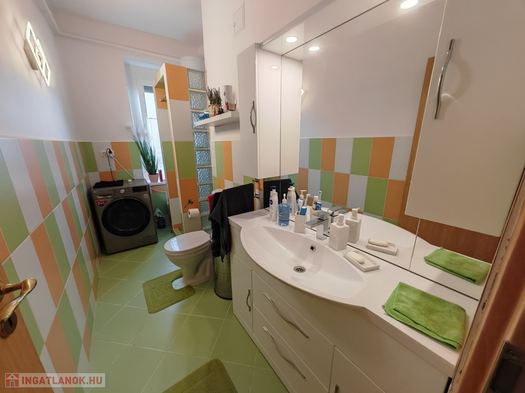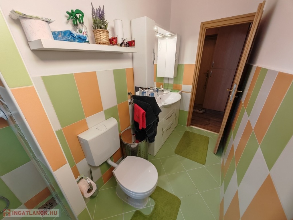 Fürdőben új szaníterek, modern burkolatok, épített zuhany kapott helyet.