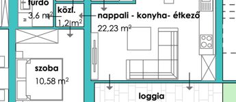 A 1 db amerikai konyhás nappalival, 1db hálószobával, 1 db fürdőszobával, közlekedővel, loggiával rendelkezik.