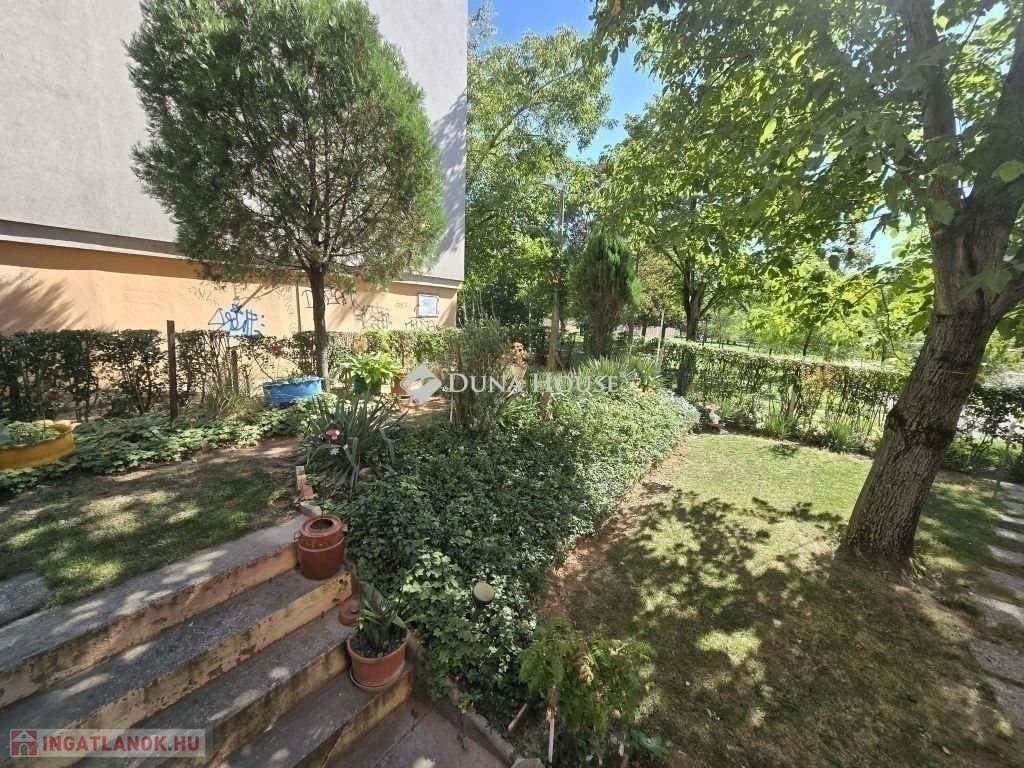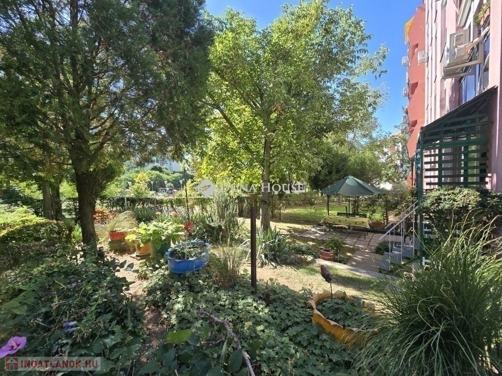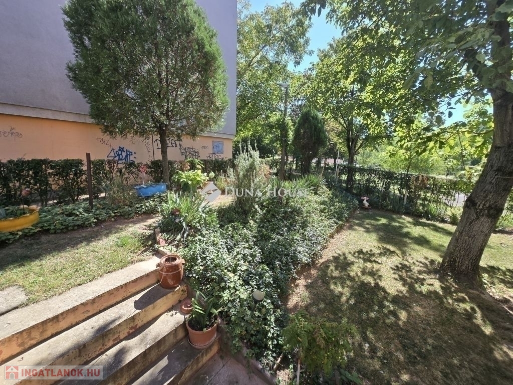 A lakáshoz tartozik egy különleges adottság: az önkormányzattal kötött használati megállapodás alapján egy kerítéssel körbevett zöld terület, virágos kert is a tulajdonos kényelmét szolgálja. A gondozott kertben hintaszék, kerti asztal és székek is helyet kaptak így a lakás valódi kertkapcsolatos otthon érzetét nyújtja.