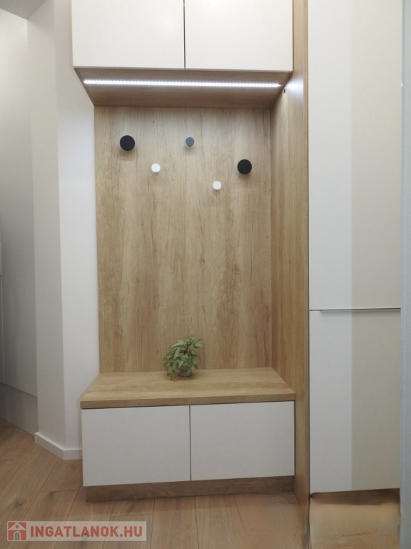 A teljesen felszerelt konyha és a beépített szekrények praktikus helykihasználást biztosítanak. A lakás fűtéséről és hűtéséről klíma, illetve Nobo panel gondoskodik, így a rezsiköltség rendkívül kedvező.