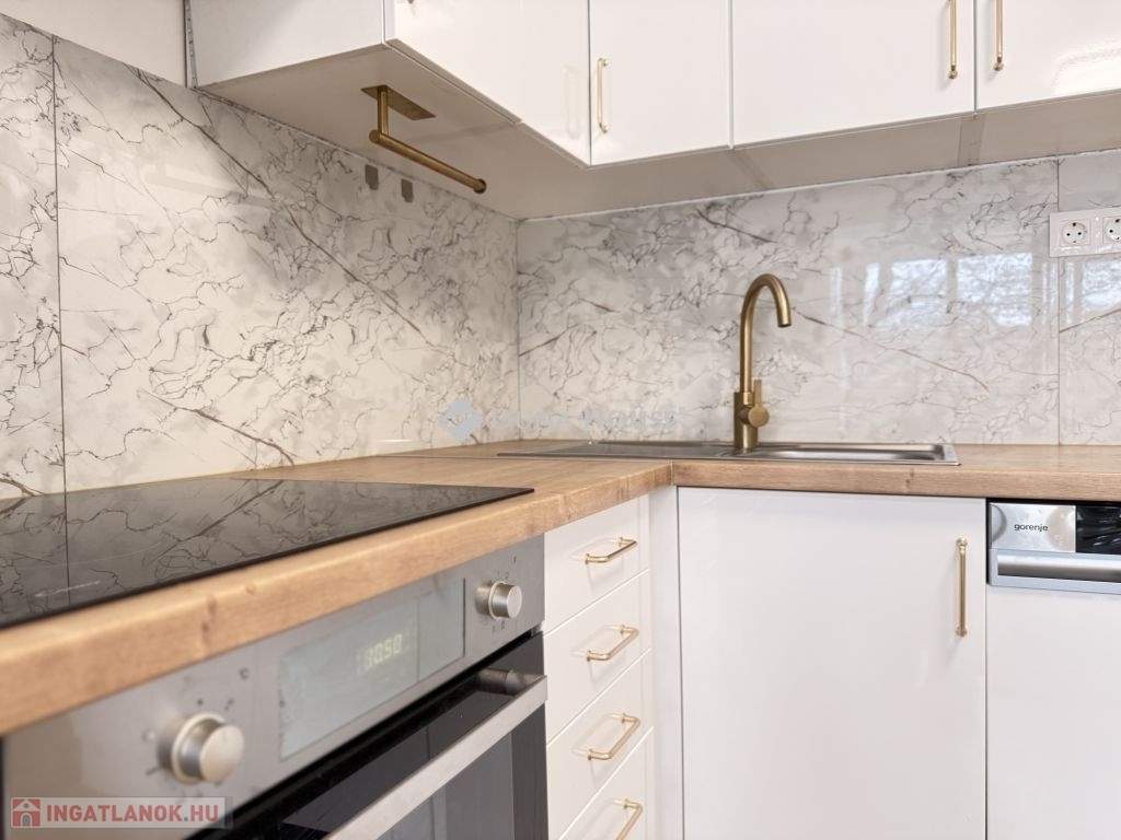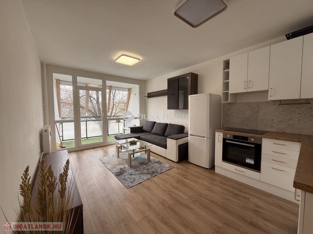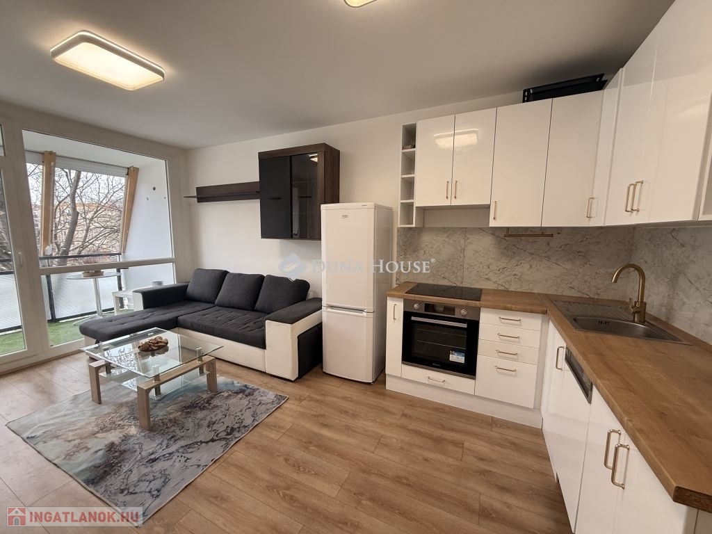 Pécs-kertváros kedvelt részén eladó egy 10/1.emeleti, vezetékekig felújított és átalakított, amerikai konyha nappali+ 2 szoba, külön fürdő és wc elosztású, erkélyes, egyedi mérős panel lakás szigetelt épületben.