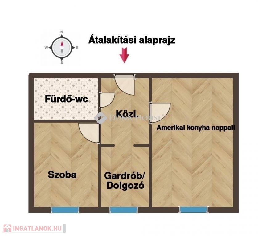 Az ingatlan felújítandó állapotú, így új tulajdonosa saját ízlésére formálhatja. Kiváló lehetőséget rejt magában, hiszen könnyedén átalakítható modern elrendezésű, amerikai konyhás nappali + 1 hálószoba + gardrób vagy dolgozószoba kialakítású otthonná. Az átalakítási alaprajz a képek között megtekinthető.