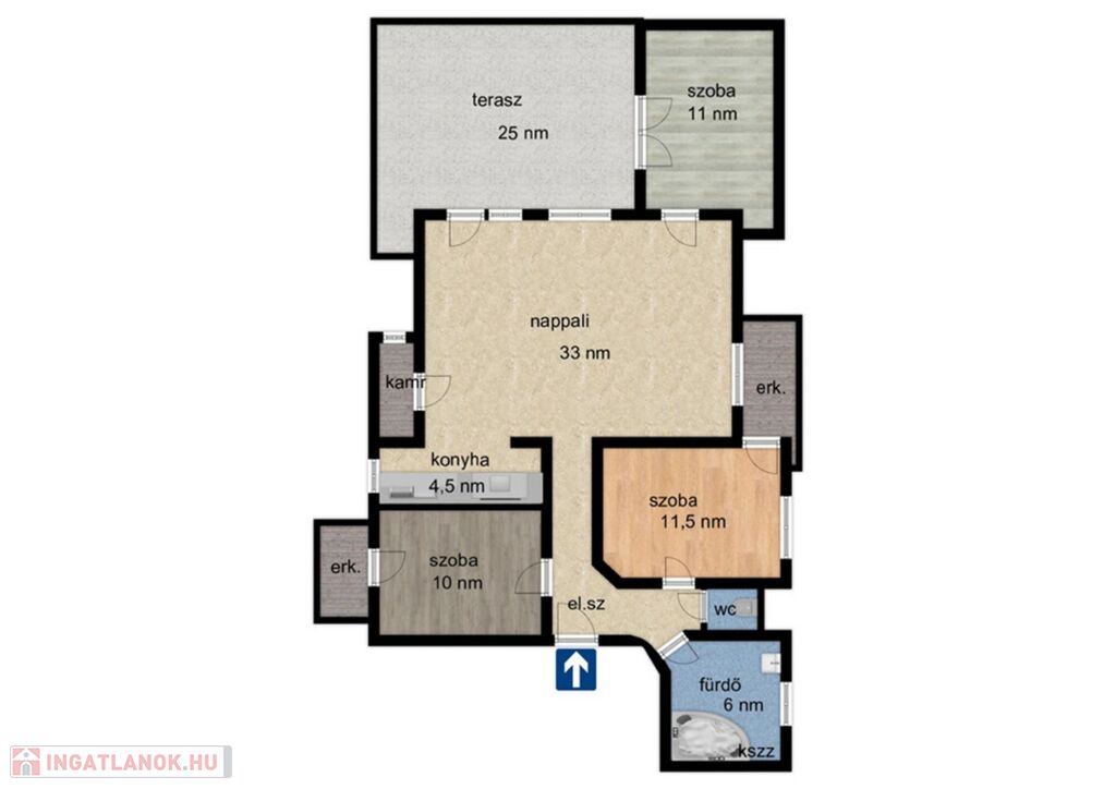 - 25 nm-es hatalmas terasz, napvédő rolóval.