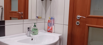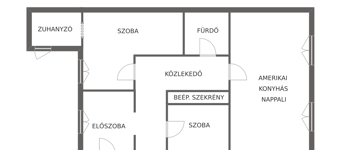 Az 1. emeleti otthon amerikai konyhás nappalival és két külön nyíló szobával rendelkezik, így a tágas közösségi tér és a nyugodt elvonulás egyaránt biztosított. A két fürdőszoba ritka kényelmet ad a mindennapokban, a beépített szekrények pedig diszkréten szolgálják a praktikusságot.