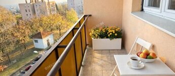 A panorámás erkély, kellemes, napfényes életteret biztosít.
