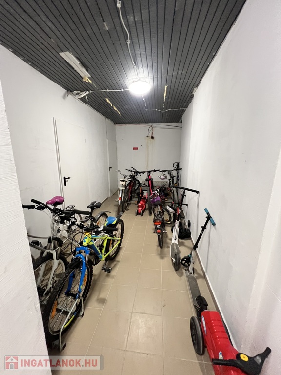 A társasház teremgarázsában saját kocsibeálló külön 11 millió Ft-ért megvásárolható.
