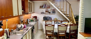 A földszinten található az étkezős konyhával egybenyitott nappali illetve a fürdőszoba WC-vel. Az emeleten került kialakításra két külön bejáratú, parkettázott szoba és egy közlekedő beépített szekrénnyel. A lakáshoz egy 35 négyzetméteres kerttel egykekötött terasz is tartozik, tovább növelve a komfortérzetet és a szabadtéri lehetőségeket.