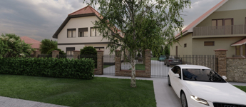 - Homlokzat: 15 cm-es szigetelés + fehér kőporos színezés – modern és hőhatékony megjelenés