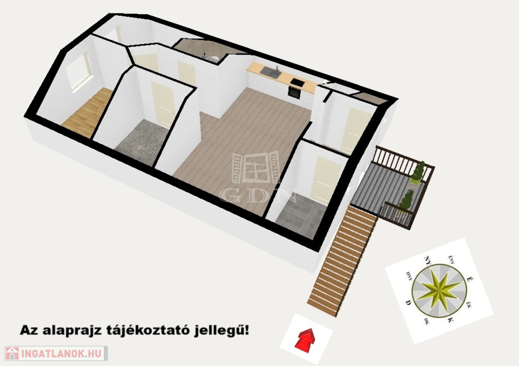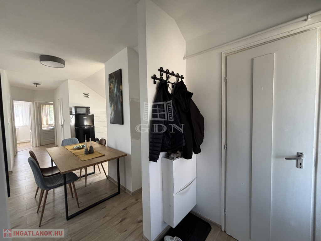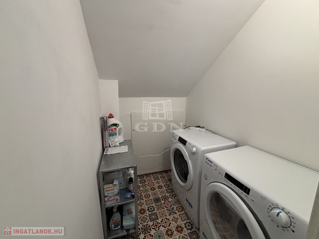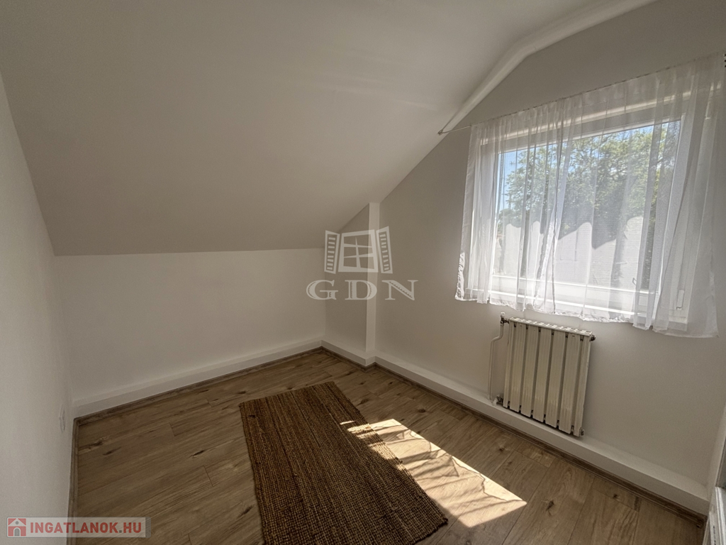 Eladó egy 65 m² alapterületű, AMERIKAI KONYHÁS nappalis, három szobás, teljes körűen FELÚJÍTOTT tetőtéri lakást, melyhez 75 m²-es SAJÁT KERT tartozik.