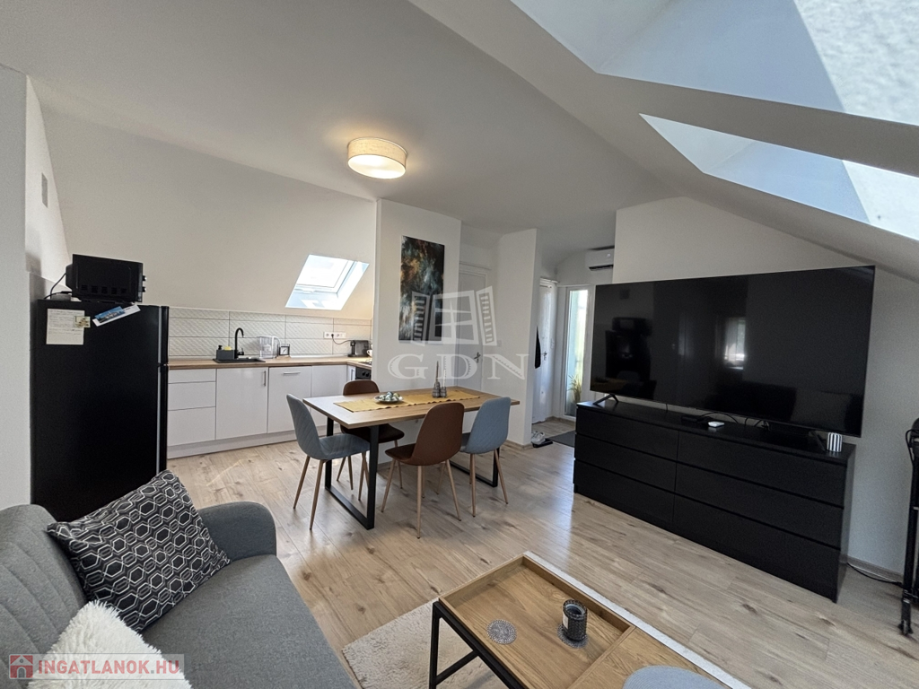MODERN TETŐTÉRI LAKÁS ÜLLŐN, SAJÁT KERTTEL!