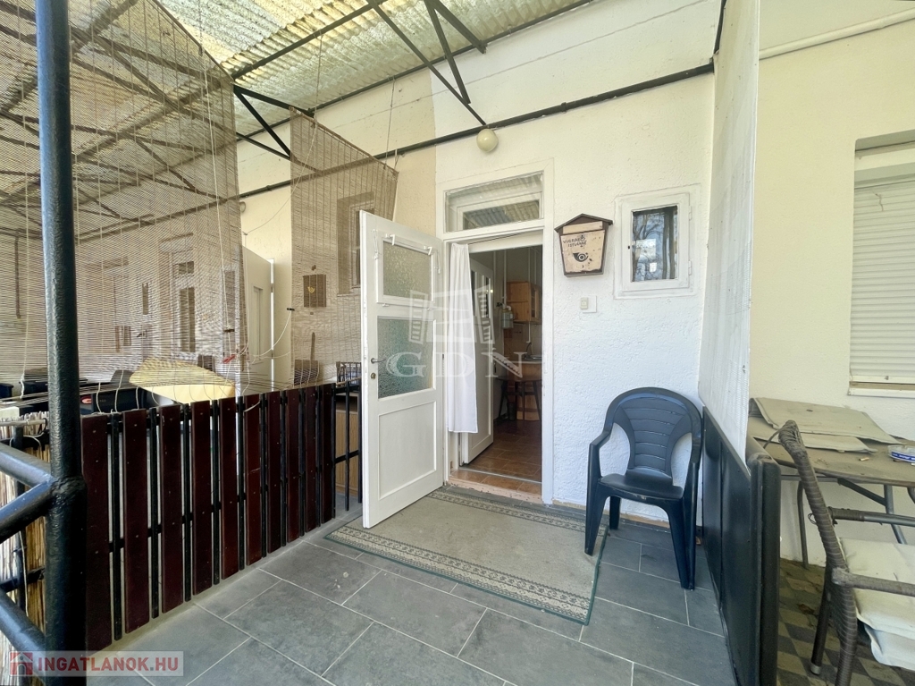 A lakáshoz tartozik egy 6 négyzetméteres terasz is, mely a közös használatú udvarra néz. Parkolás a zárt udvarban megoldott. Az ingatlanhoz tartozik egy saját használatú nagyméretű tároló is.