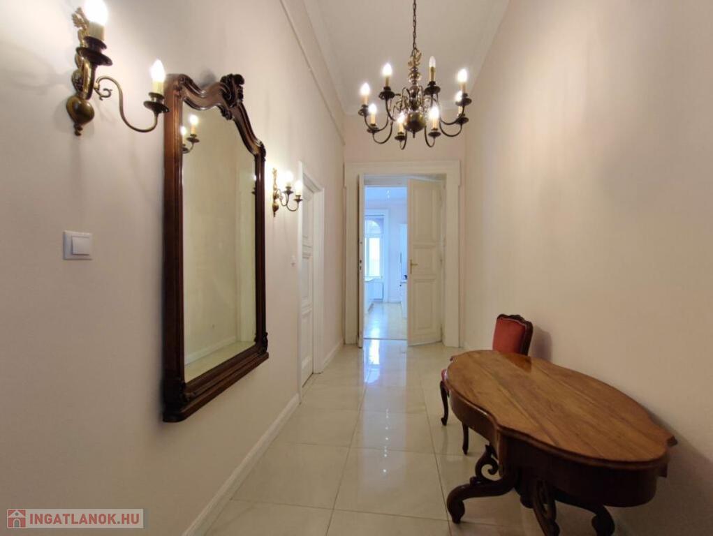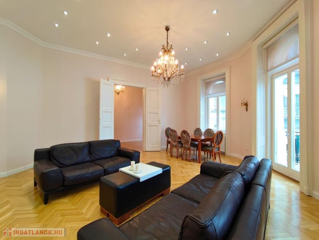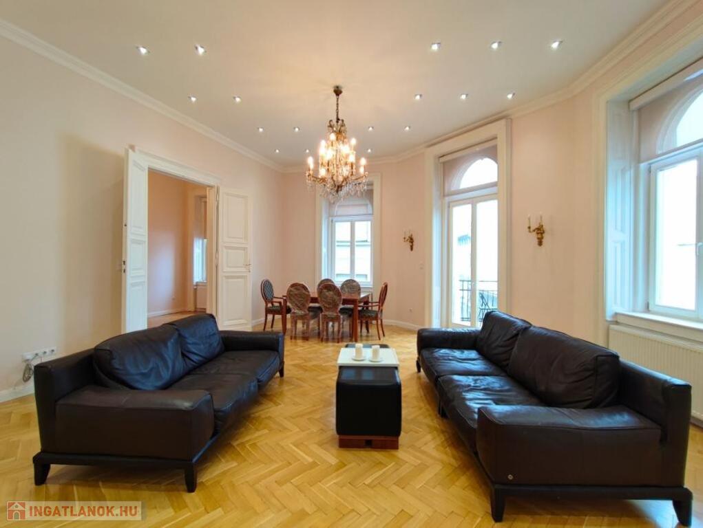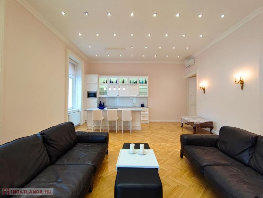 Kiadó HOSSZÚTÁVRA Budapest Belvárosában, a Veres Pálné utca egyik legszebb házának a III.emeletén egy TELJESKÖRŰEN FELÚJÍTOTT, 125 nm-es, amerikai konyhás + nappalis, 2 hálószobás, 2 fürdőszobás, igény szerint bútorozott, gépesített, légkondicionált, világos, erkélyes lakás.