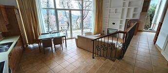 Zöldmálon zsákutcában, erdő szomszédságában kiadó egy kevés lakásos újszerű társasházban egy 1,5 szobás, nagy teraszos, közvetlen kertkapcsolatos lakás. Bútorozott, gépesített konyhával, házközponti fűtés egyedi méréssel (padlófűtés és radiátoros hőleadókkal), hatalmas ablakokkal.