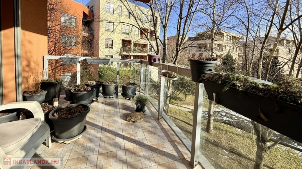 SASAD LIGET 1 ütemben KIADÓ egy rendkívül csendes és jó elosztású, nappali+ 2 hálószobás részben bútorozott (sok beépített bútorral), gépesített konyhás, nagy méretű és fedett erkéllyel rendelkező lakás liftes házban.