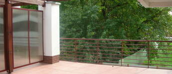 Ablakai, valamint teraszok a belső, csendes, parkosított udvarra néznek. Ízléssel berendezett helységek,