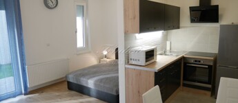 Győrben, a marcalvárosi „ kiserdő” szomszédságában, Mécs László utcában, 2019-ben átadott, fokozottan hőszigetelt, belső udvaros társasház földszintjén 30 m2-es, amerikai konyhás, hálófülkés, teraszos ( 5 m2 ), zöldre néző, csendes-világos, fiatalos társasházi lakás 2 havi kaucióval, nemdohányzó egyedülállónak kiadó. A tulajdonos bútorokat, okostévét, hűtőt, mikrosütőt és mosógépet is biztosít a bérlő számára.