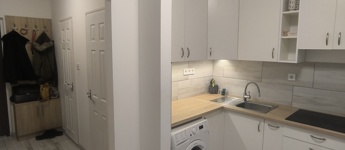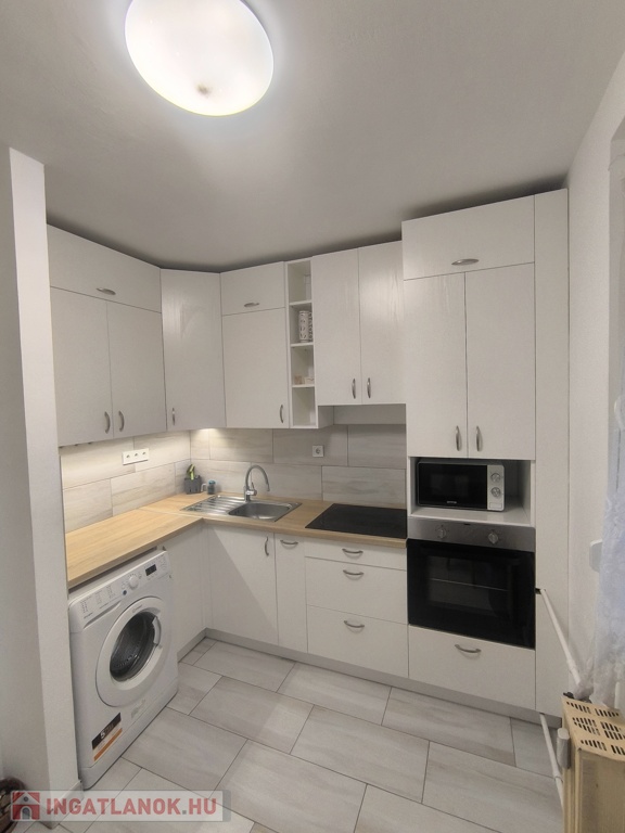 – Felszerelt konyha, hűtő, mosógép, mikrohullámú sütő, beépített sütő, villany főzőlap
