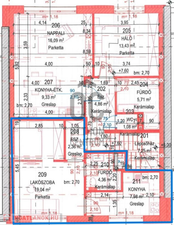 Zárt lépcsőházból érhető el.