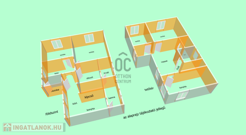 A ház helységei 2 szinten kaptak helyet, jelenleg közös bejárattal, de a szintek elválaszhatóak.
