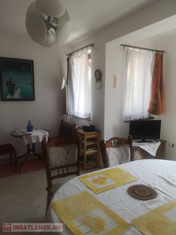 Veszprém vármegye, Balatonudvari, 165m2-es családi ház eladó. A kedvelt Balaton-parti település csendes utcájában található ingatlan fogadószintjén közlekedő, kazánház (tároló), nappali, konyha, étkező, két hálószoba és fürdőszoba, míg a tetőtérben további három szoba, konyha, nappali (kilátással a Balatonra), és fürdőszoba került kialakításra. A 2013-ban, 709m2-es telekre épült, szigetelt családi ház melegéről fatüzelésű kazán, valamint kandalló gondoskodik. A meleg vizet elektromos bojler biztosítja. A klimatizált, részben alápincézett, tehermentes ingatlan udvarán pergola, fúrt kút található, továbbá a gázrákötési lehetőség is biztosított.