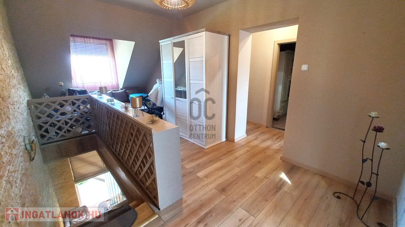 - az emeleti rész 3 hálószoba, gardrob, közlekedő és fürdőszoba elosztású