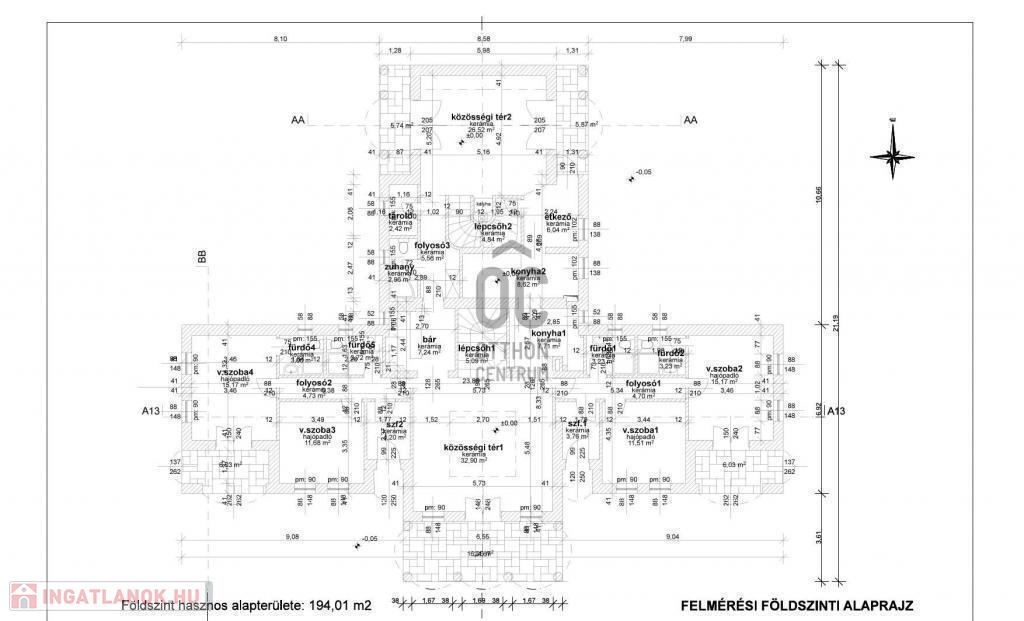 16 m2-es fedett teraszon keresztül jutunk be a 32,9 m2-es nappaliba, földszinten még 4 szoba, közlekedő, 4 fürdőszoba-WC, konyha, valamint a külön lakrészben nappali-étkezővel, terasz, közlekedő, gardrób, zuhanyzó-WC helyiségek kerültek kialakításra.