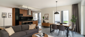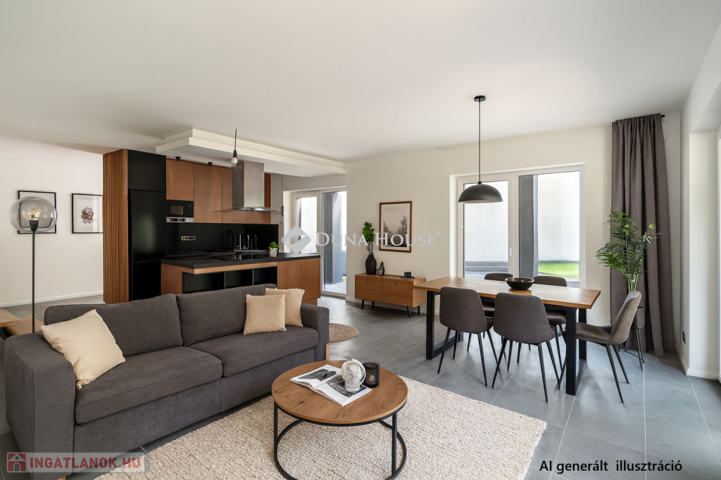 Az ikerház földszintjén egy tágas nappali-konyha-étkező található, mellyel az alsó szinten egy hálószoba és egy fürdőszoba is kapcsolódik, az emeleten további három hálószoba, egy fürdőszoba található, és lehetőség van egy terasz kialakítására is. A konyha modern Bosh berendezésekkel felszerelt, biztosítva ezzel a mindennapok kényelmét.