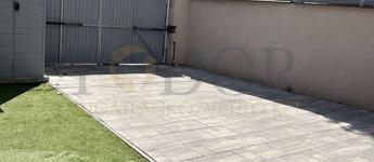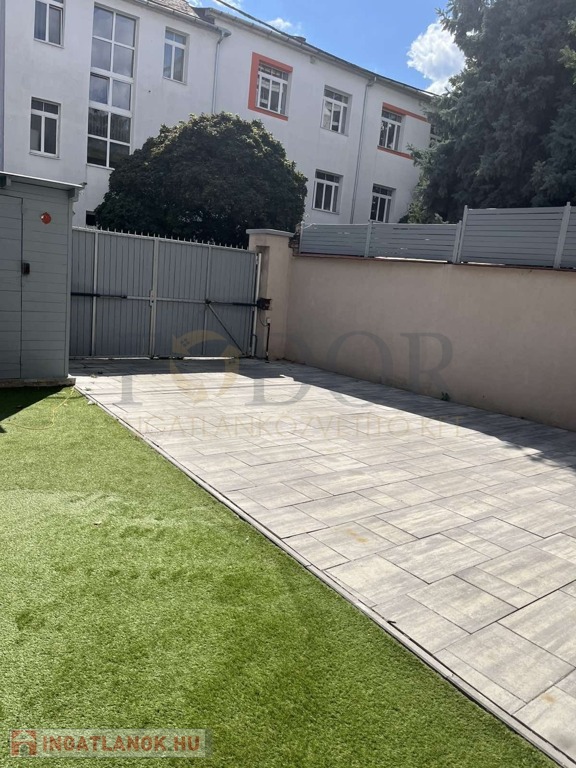 A 440 m²-es saroktelek két utcáról is megközelíthető, parkosított, műfűvel és Viacolor térkővel burkolt, tágas kocsibeállóval, amely két autó számára biztosít kényelmes parkolást.