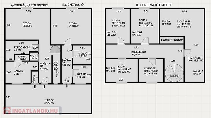 Az I. generáció: belső két szintes 113 m2. A földszinti részen előszoba, dolgozószoba, szoba konyha, fürdőszoba, kamra, közlekedő és mellékhelyiség található. Az emeleten 3 félszoba, közlekedő, fürdőszoba és egy bővíthető padlástér (1-2 szoba még kialakítható) áll rendelkezésre.