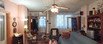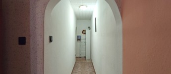 Az udvarba a biztonságos bejárati kapun keresztül jutunk, ami méretéből adódóan gépkocsi behajtására vagy akár is alkalmas. Belépve a kapun jobbra találjuk a két szintes családi házat, balra pedig a külön bejáratú üzlethelyiséget. A bejárati ajtó egy 10 nm-es fedett teraszról nyílik, ahol reggelente kávézhatunk, esténként pihenhetünk, innen az előtérbe érkezünk, ahonnan az egy légtérben, de mégis kissé elválasztva a tágas 28 nm-es járólappal burkolt világos nappali nyílik. Ez a ház központi része, itt ez egy közös tér ahol összejöhet a család, kellemes időtöltésre. Jobbra helyezkednek el az utcára néző, de mégis csendes egymás mellett nyíló 16,5 nm-es, járólappal burkolt, hangszigetelt fa ablakokkal ellátott szobák, amik saját életteret is nyújtanak a család tagjainak. Balra találjuk a harmadik, 13,5 nm-es fa parkettás tágas, világos szobát, ebből a szobából a teraszra nyílik a kilátás. A szoba mögött jobb oldalon egy folyosó vezet, aminek a végén jobbra nyílik a 3,5 nm-es csempével burkolt, sarokkádas, ablakos fürdőszoba. Mellette kapott helyet 1,5 nm-es kerámia burkolatú toalett. Szemben a 7,5 nm-es tágas gépesített, bútorozott, étkezős, ablakos, világos konyhába jutunk. A konyhából nyílnak a tárolók és innen egy ajtón keresztül juthatunk az udvar aszfaltozott kocsibejáró részére.
