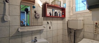 A házból kilépve az udvaron szemben találjuk a 20 nm alapterületű, különálló, kétszintes üzlethelyiséget, amely most lakásként van hasznosítva. Belépve egy amerikai konyhás bútorozott, gépesített, étkezős nappaliba érkezünk. Innen lépcső vezet a felső szintre, mely jelenleg hálószobaként funkcionál. A lépcsővel szemben nyílik az épített zuhanyzós, toalettes, 2 nm-es fürdőszoba. Itt a fűtést gázkonvektor biztosítja. Az udvaron tovább haladva a családi ház folytatásában találjuk a tárolókat, az elsőben kapott helyet a fűtést biztosító gázcirkó és egy vegyes tüzeléses kazán. A tárolókkal szemben, az udvar másik oldalán egy fémvázas, fedett rész került kialakításra.