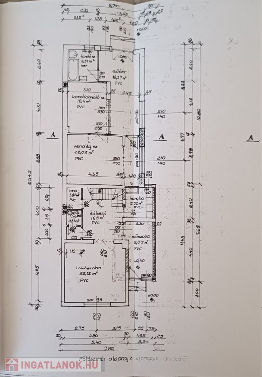 A földszint 160 m², amelyhez 1992-ben a tetőtér is beépítésre került, közel azonos alapterülettel.