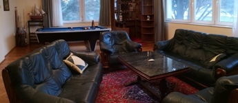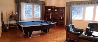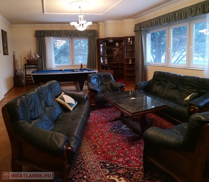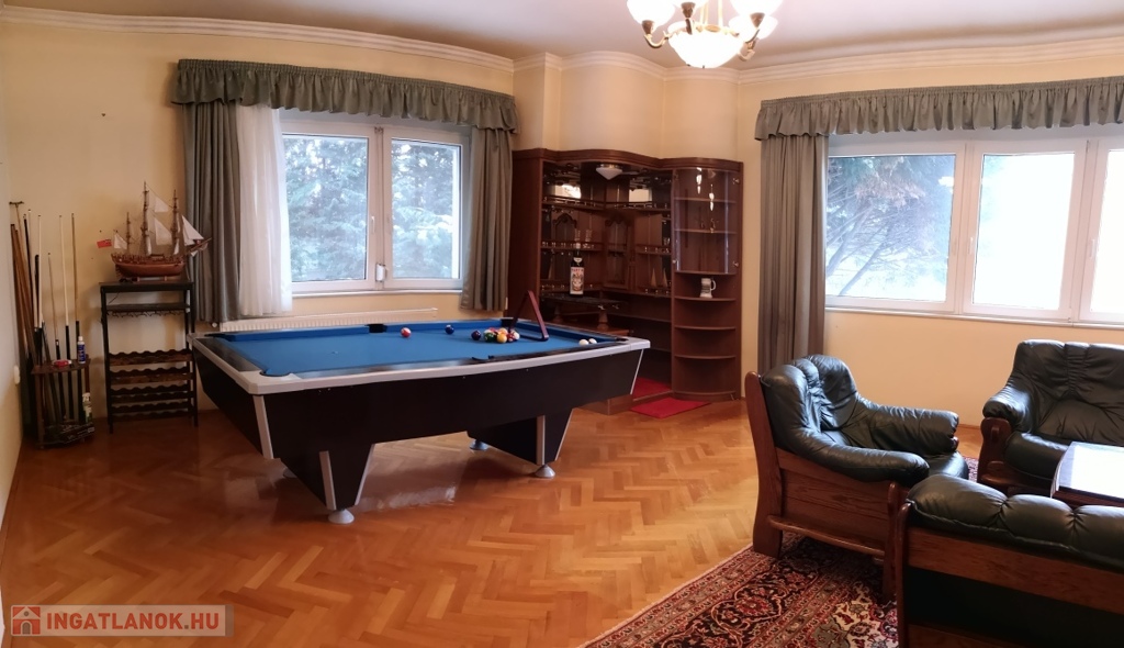 • tágas nappali beépített bárszekrénnyel és biliárdasztallal