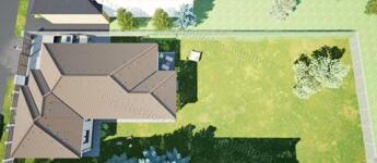 A nappaliból és a szülői/vendég hálóból közvetlen kijárat nyílik a 23 m²-es, részben fedett, nyugati fekvésű teraszra, amely tökéletes helyszíne lehet családi pihenésnek vagy baráti grillezéseknek.