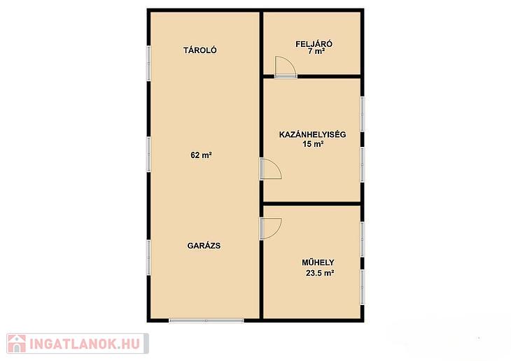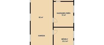 Szuterén: garázs, műhely, kazánhelyiség, feljáró.