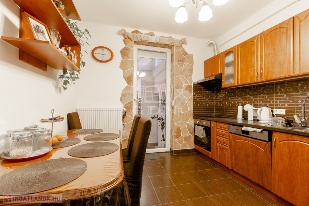 Megvételre kínálok Budapest XVII. kerület Rákoskert, csendes mellékutcájában, 650 nm-es telken délkeleti fekvésű, nettó 109 nm-es, bruttó 134 nm-es, 3 + 3 félszobás, gyönyörűen felújított családi házat.