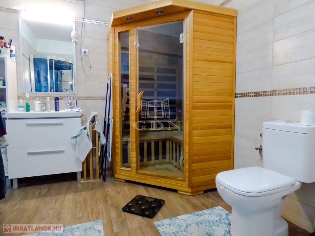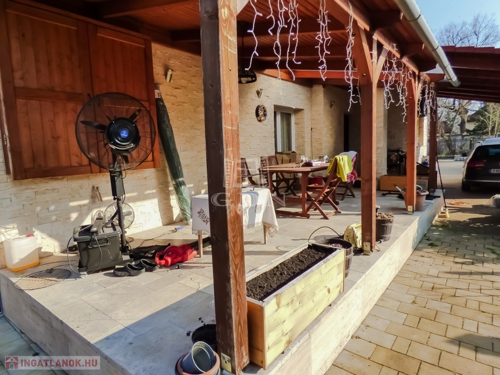 XVII. kerületben, Régiakadémia telepen különálló, körbejárható, 722 nm-es telken lévő, 98 nm-es, 3 szobás, jó állapotú (2020-ban felújított, hideg burkolatok, nyílászárók 3 rétegű thermo műanyag, villanyvezetékek, dryvit szigetelés), kondenzációs gáz cirkó fűtésű, hűtő - fűtő klímával felszerelt (4 db), Keleti fekvésű, FEDETT, NAGY TERASZOS (23 nm), NAPELEMMEL ELLÁTOTT, rendkívül alacsony fenntartási költségű, FŰTHETŐ MEDENCÉS (hőszivattyú), rugalmasan birtokba vehető, TEHERMENTES, kamera rendszerrel és riasztóval biztosított családi ház eladó.